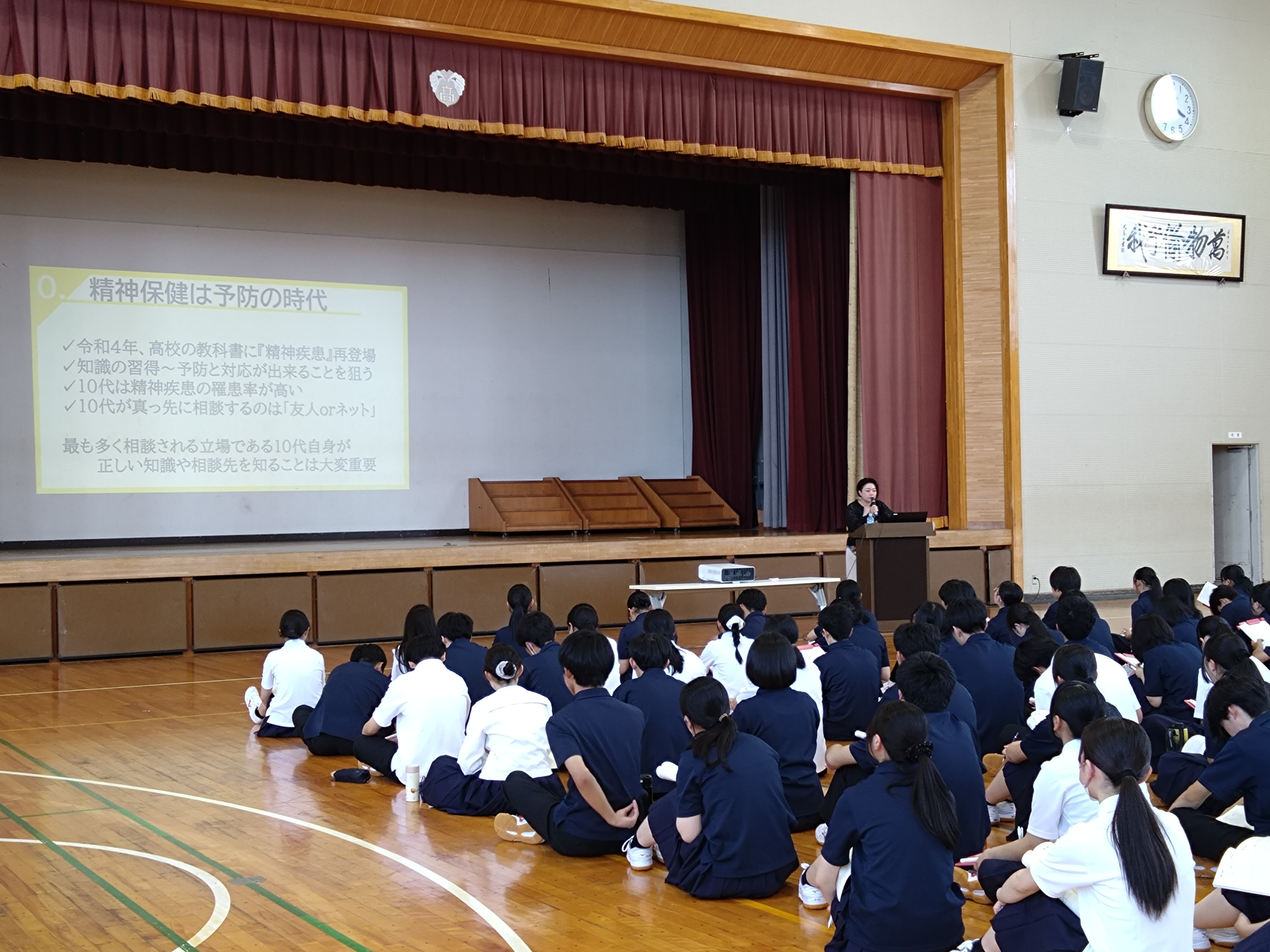 6月17日(火)に本校スクールカウンセラーの寒河江亜衣子先生を講師にお迎えし、1年次の精神保健講話を行いました。現在、保健の授業で「精神疾患の予防と回復」について学んでいることもあり、生徒はメモを取りながらお話をお聞きしました。高校生の年代はまだ脳の整備が出来上がっていないこと、だからちょっとの刺激で理性を吹き飛ばしてしまうことがあること、10代は高依存リスク群であること、自分のセーフティーネットを多種多様にしておくこと、自己制御できないことは他を頼ることなどを学びました。また、記憶の定着には興奮と反復が重要とのこと。これからの勉強のやり方や、自分を保つための自己メンテナンスに取り入れられそうなヒントがたくさんありました。